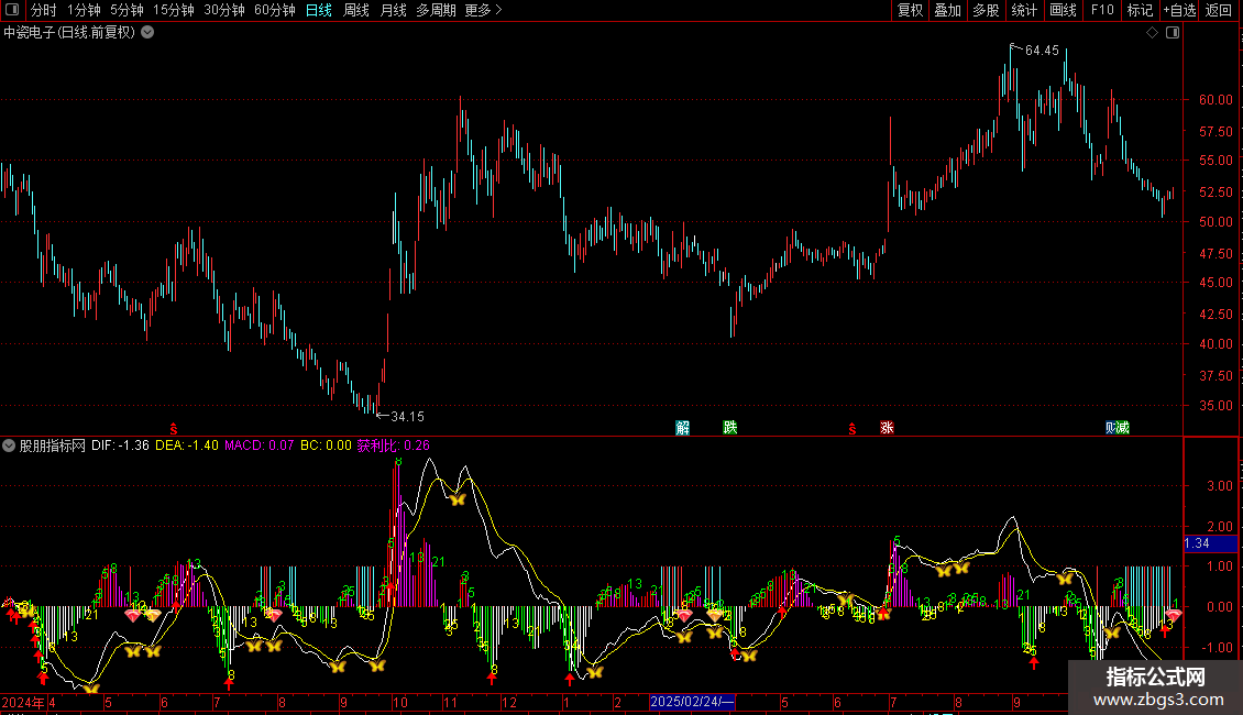 DRAWTEXT(BARSLAST(T)=55,MACD2,'55'),COLORGREEN;