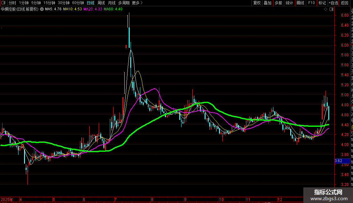 4 特别当绿色趋势线上形成金叉后,常预示进入主升浪阶段;相反,若K线与绿色线出现死叉,尤其前期高位未及时卖出时,必须果断全仓卖出。