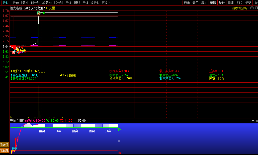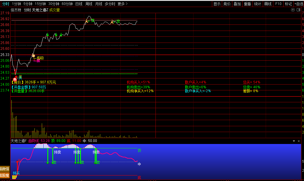 通达信『天地之道』分时主副图精准判断分时走势T+0高抛低吸点位源码