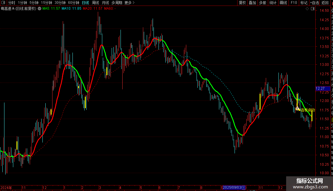 上穿3线条件:=当日站上3线 AND 前一日在3线下;