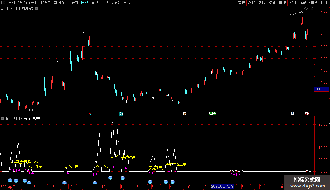 DRAWTEXT(CROSS(关注,4.5),关注,'买点出现'),COLOR00FFFF;