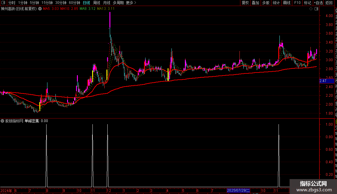 1. 核心信号:当K线下方出现“★低位单峰密集”黄色文字+红色图标,代表个股满足低位筹码单峰密集+起爆量价条件,是核心介入信号;