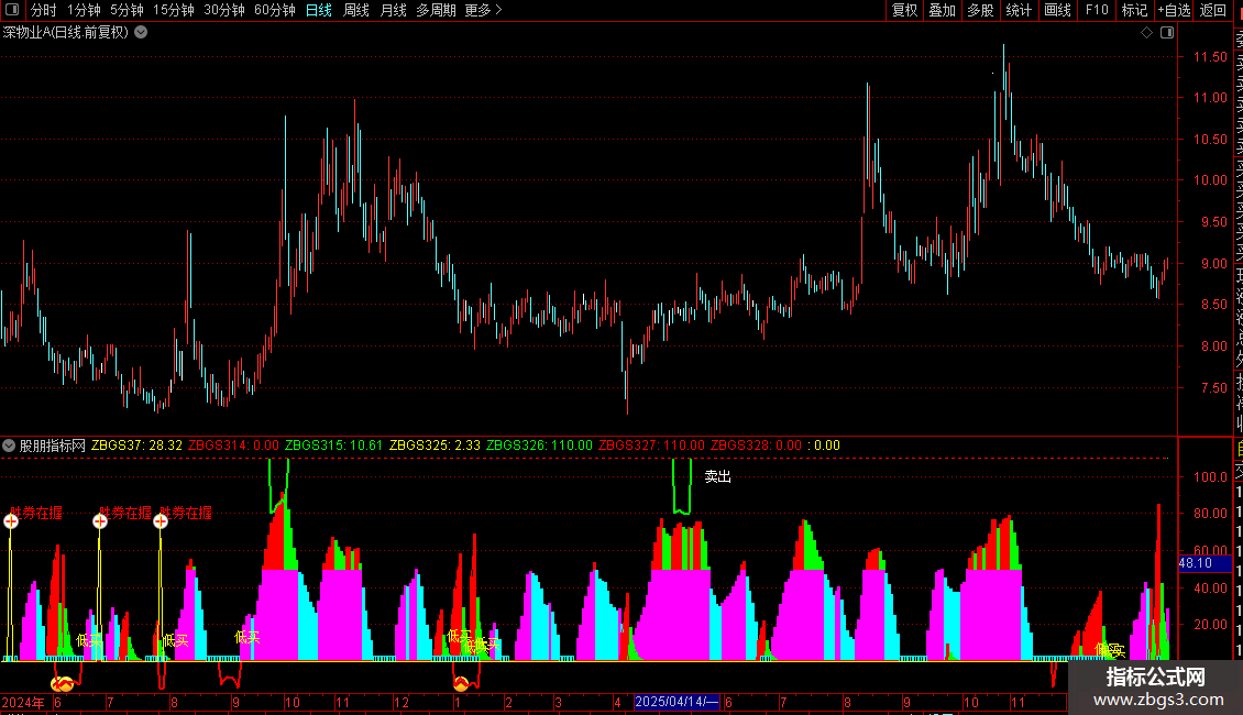 DRAWTEXT(ZBGS343 AND ZBGS330>75,100,'卖出'),COLORWHITE;