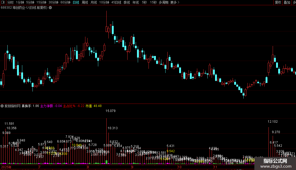 大家都知道,换手率越高,个股活跃度通常越大。而真实换手率(换手Z)能有效识别“真实活跃股”,避免被虚假热度误导。使用该指标时需结合位置判断——处于高位或低位意义不同。当换手Z超过50%,意味着近半数可交易筹码已换手,市场俗称“换庄”。