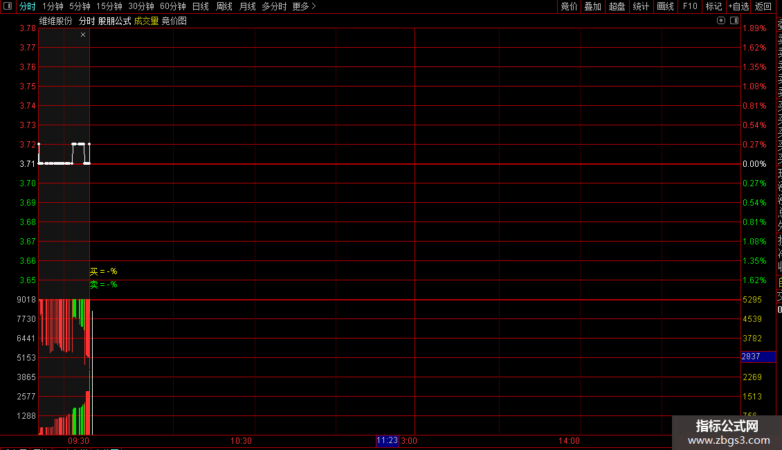 本指标为通达信专属适配版分时资金副图指标,无未来函数,分时图使用效果最佳。整合分时资金统计、攻击力度测算、主力 / 散户筹码动向、量价匹配验证及多维度买卖信号于一体,还实时展示机构买卖占比、现手盘口资金数据,全方位反映资金博弈。指标含买 1-3、日内低、分时突破等梯度买点,冲涨停、打板拉升信号,及小心、走弱趋势警示信号,所有信号以文字 + 图标直观呈现,精准判断股价动能与资金方向,是短线分时交易、实时盘口分析的实用工具。