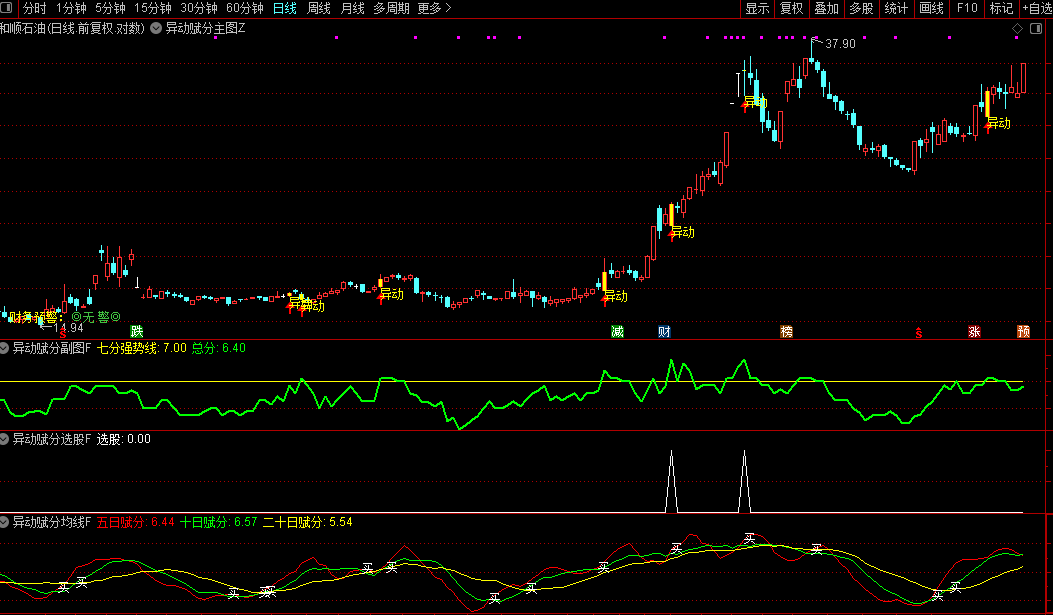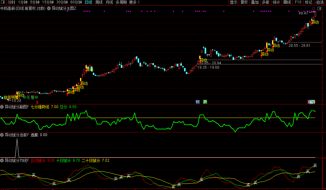 3)当出现“异动”信号时,赋分分值大于等于7分为强势