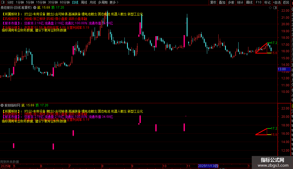 指标主要功能是整合个股所属行业、概念、地域及风格板块信息,并展示关键财务数据(如总股本、流通盘、市盈率、净资产收益率、主营利润率等),帮助投资者快速了解公司基本面。同时,通过识别龙虎榜资金动向和涨停信号,提示短期交易机会。此外,还构建了高低点结构分析系统,自动标记近期关键支撑与压力位,并在价格突破前高时发出买入信号。