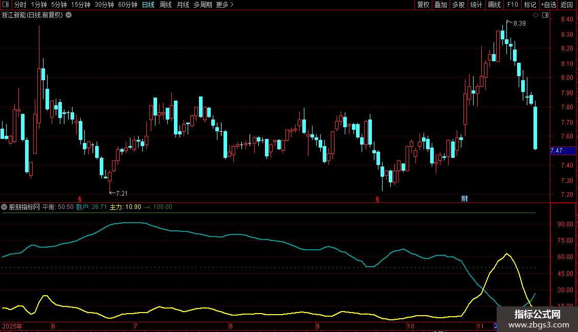 DRAWICON(CROSS(主力,散户) AND 主力>50,平衡,25);