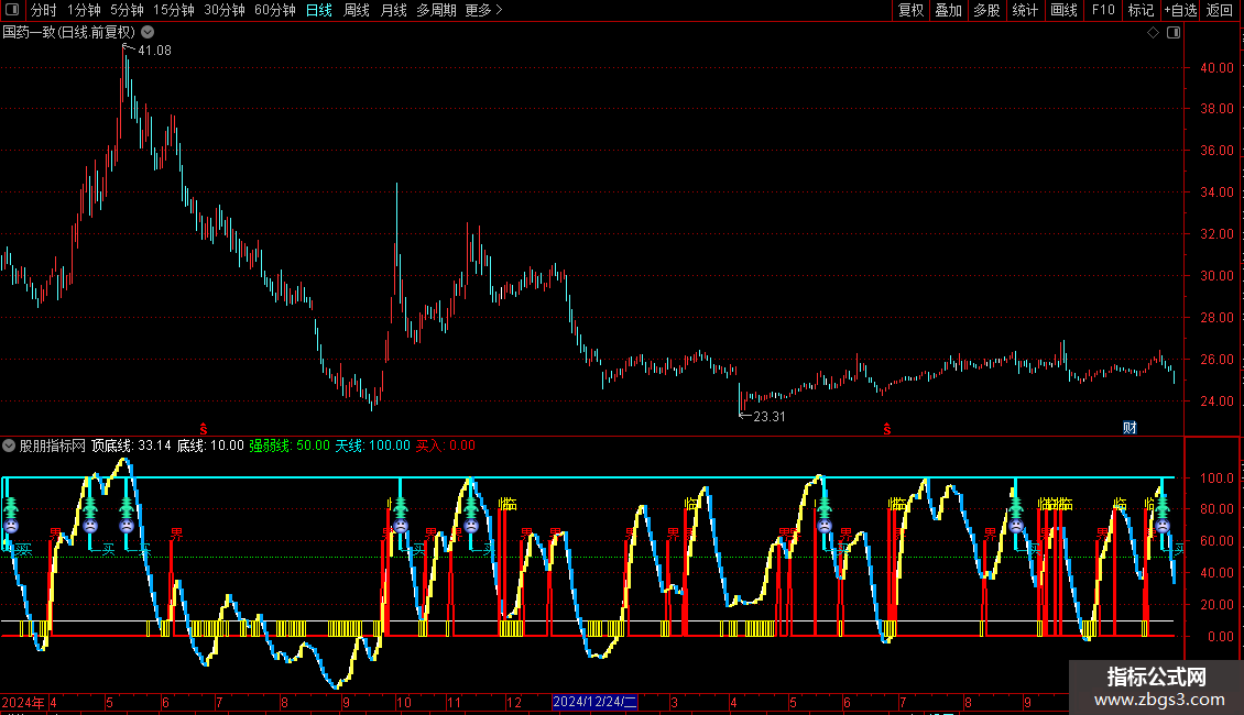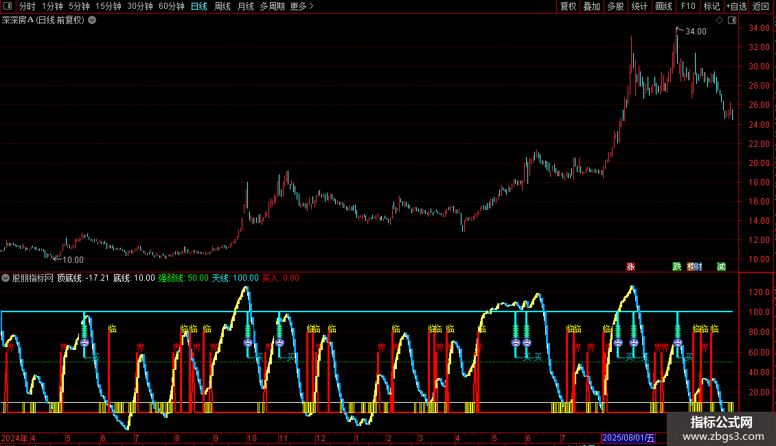 STICKLINE(REF(顶底线,1)<顶底线,顶底线,REF(顶底线,1),2,0),COLOR11BBBB;