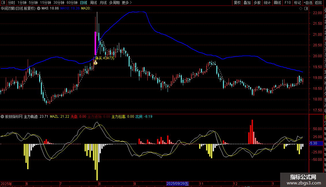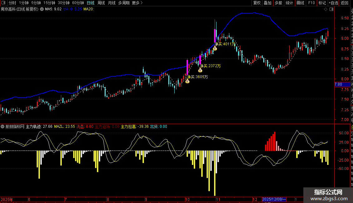 输出MAZL:主力轨迹的N2日简单移动平均,画黄色