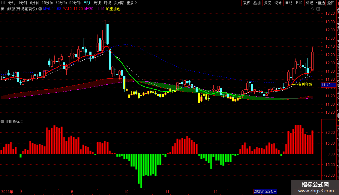3. 黄色粗线【加速加仓】=趋势加速拉升,可加仓跟进;涨停K线高亮显示,辨识度拉满。