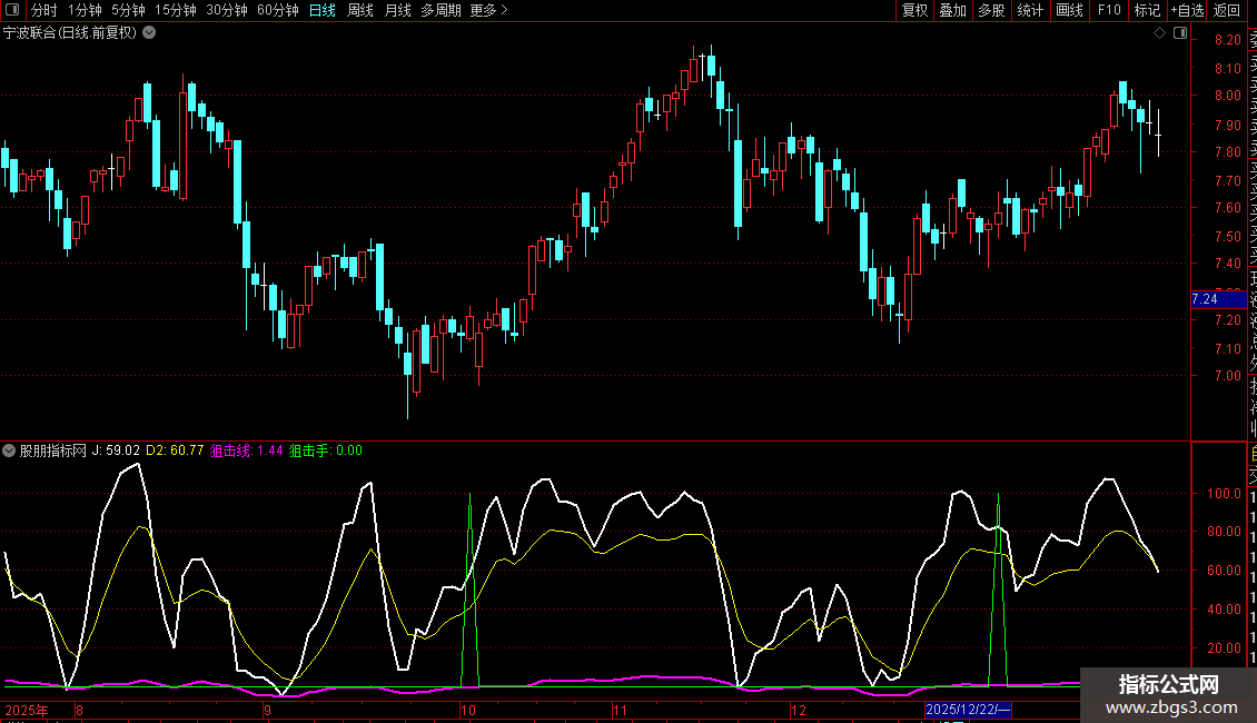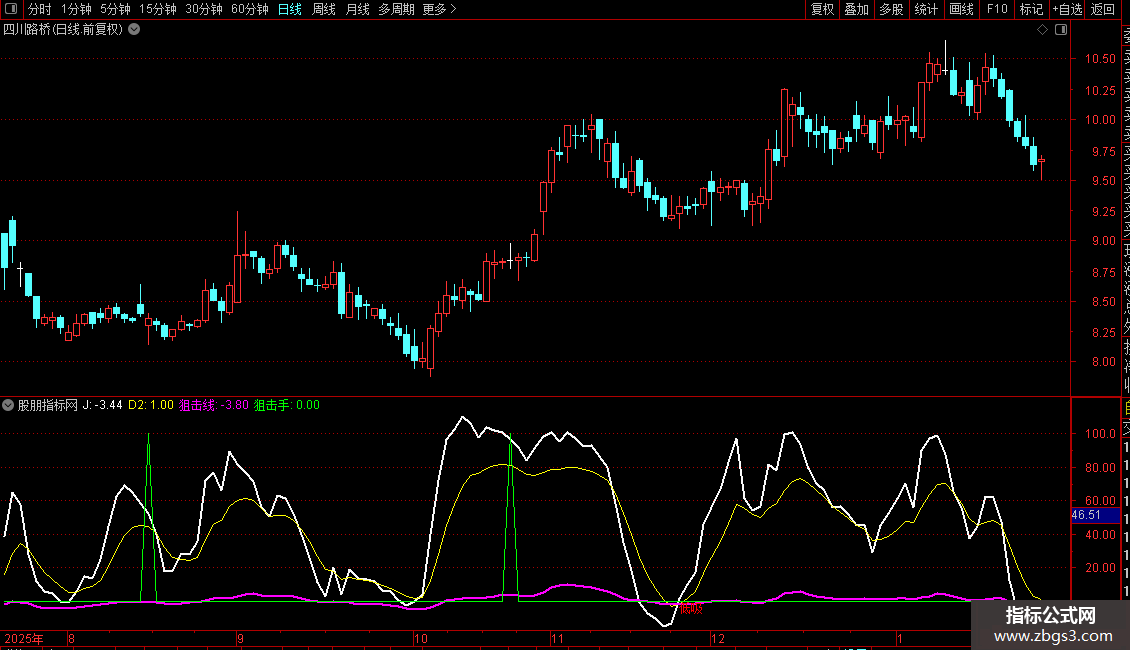 该指标是设计巧妙的短线超跌反弹利器。它通过J线穿越零轴,价格大幅偏离均线即狙击线小于等于负七,以及MACD超跌状态确认这三重过滤机制,来寻找高胜率超跌反弹机会。
