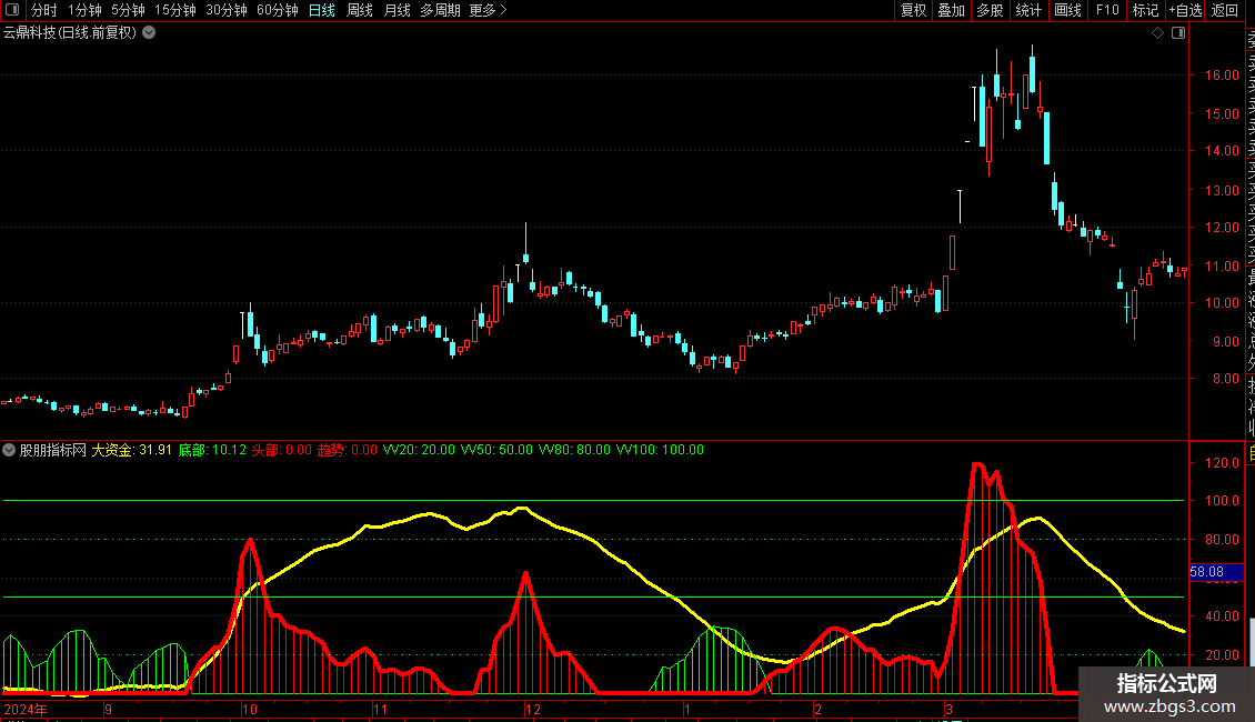 大资金:VAR3*(-1)+100,COLOR00FFFF,LINETHICK3;