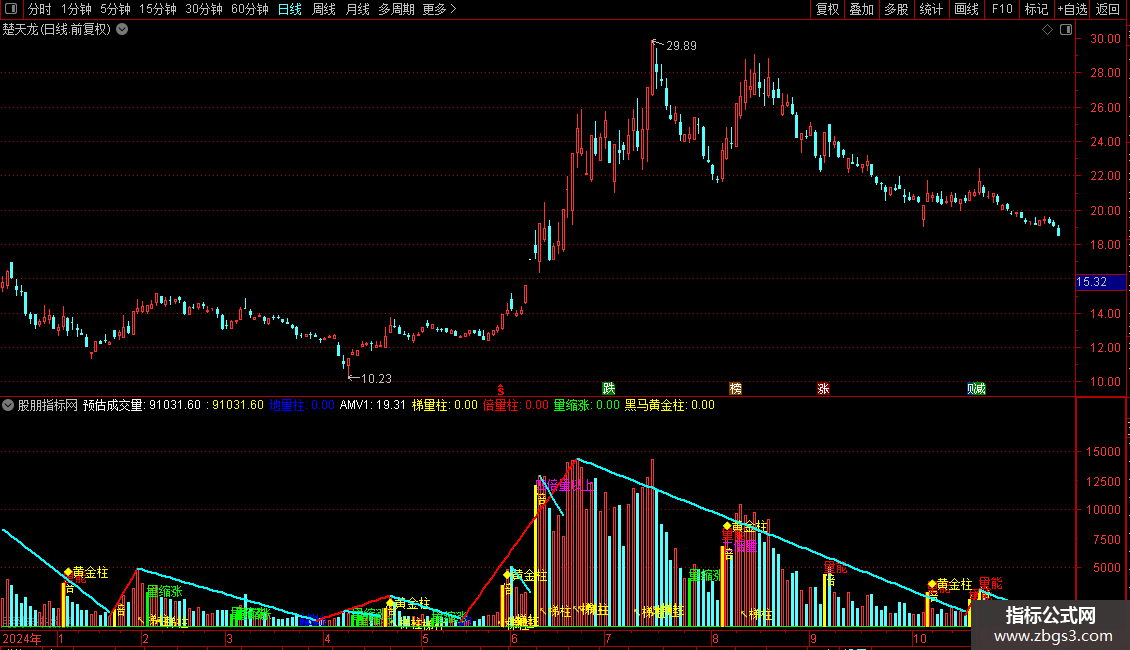 DRAWTEXT(梯量柱,VOL*0.1,'↖梯柱'),COLORYELLOW;