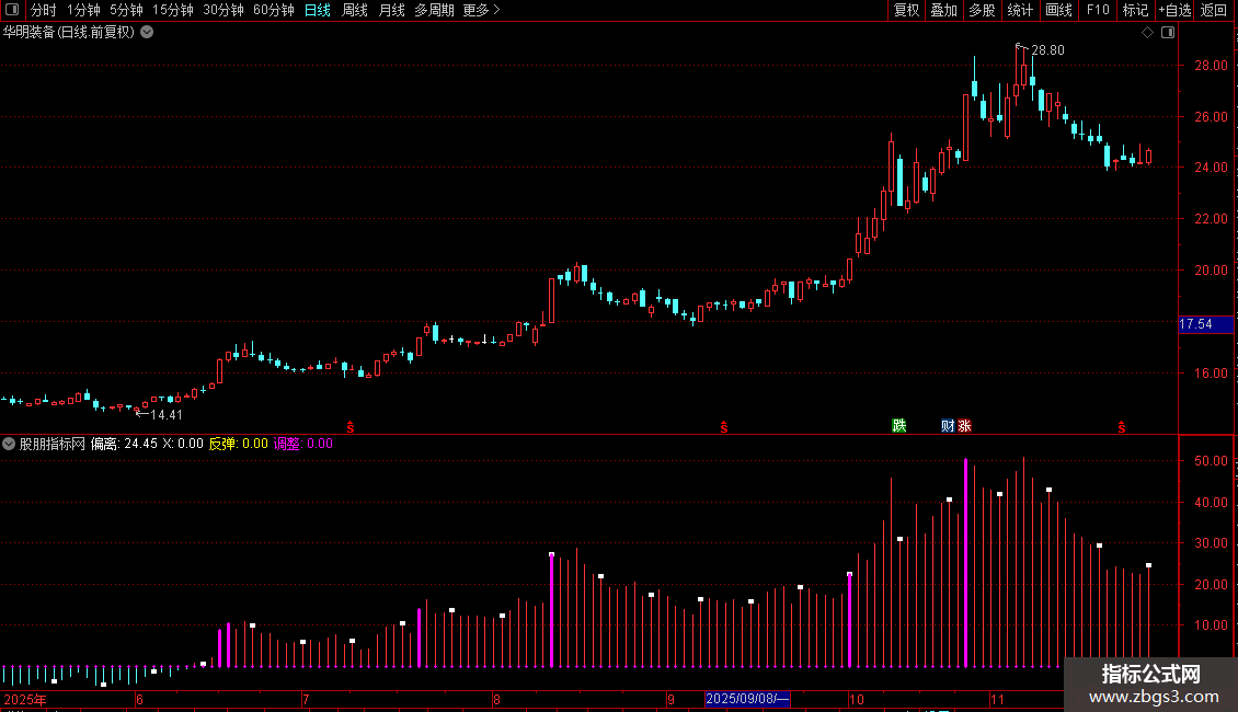 调整:IF(WR1<3 ,偏离,0),STICK,LINETHICK3;