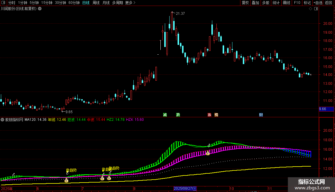 短波:EMA(HZ,1),COLOR00DD00,LINETHICK1;