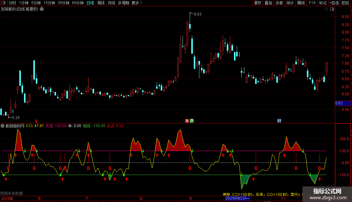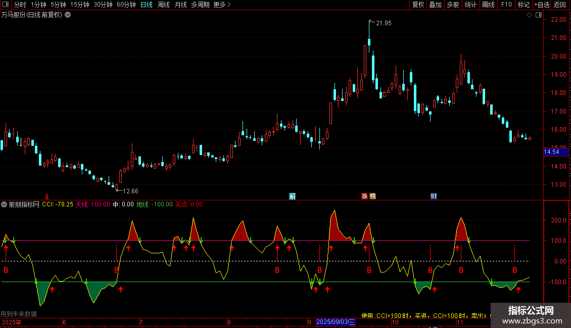DRAWTEXT(CURRBARSCOUNT=45,-400/1.5,'使用 :CCI>100 时,买进,CCI<100 时,卖出;