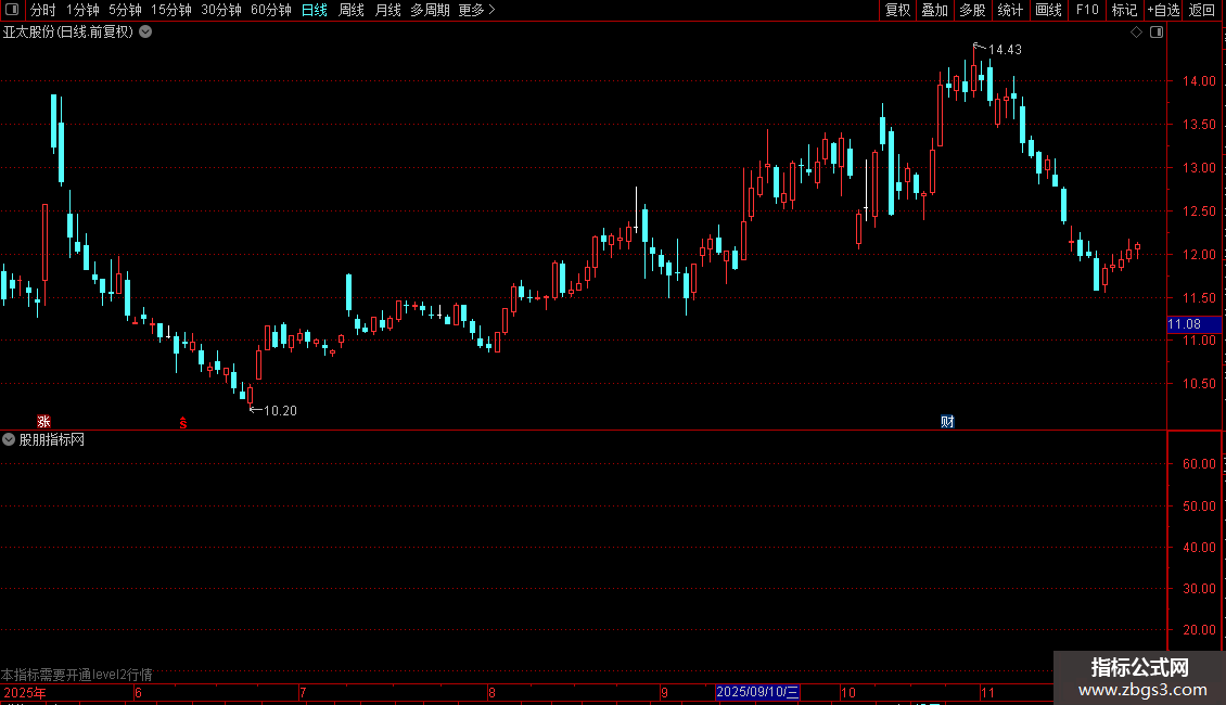 DRAWTEXT_FIX(CURRBARSCOUNT=1,0.03,1,0,'(X10万元)'),COLOR00FFFF;