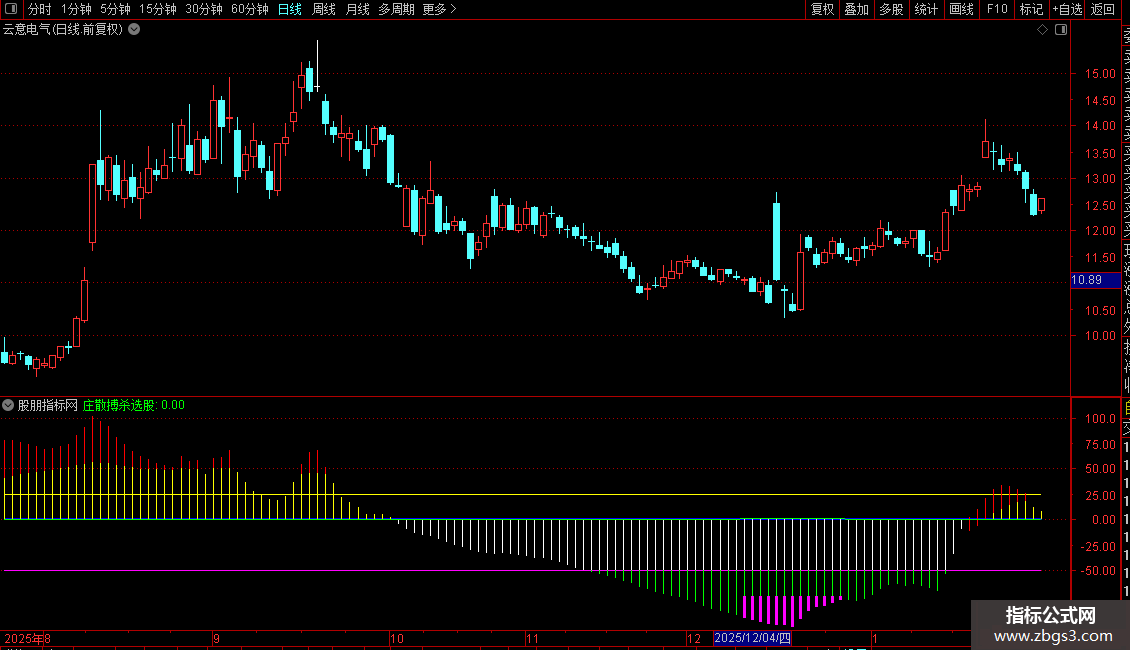 指标通过均线偏离度、价格波动区间和筹码分布,衡量股价所处的相对位置及主力与散户的博弈状态。当价格处于低位且筹码集中度显示主力高度控盘,同时散户参与度极低时,视为潜在强势启动信号。指标以多色柱状图直观反映庄家与散户的力量对比,特别关注极端背离区域的反转机会,用于捕捉主力吸筹完成后的爆发点。
