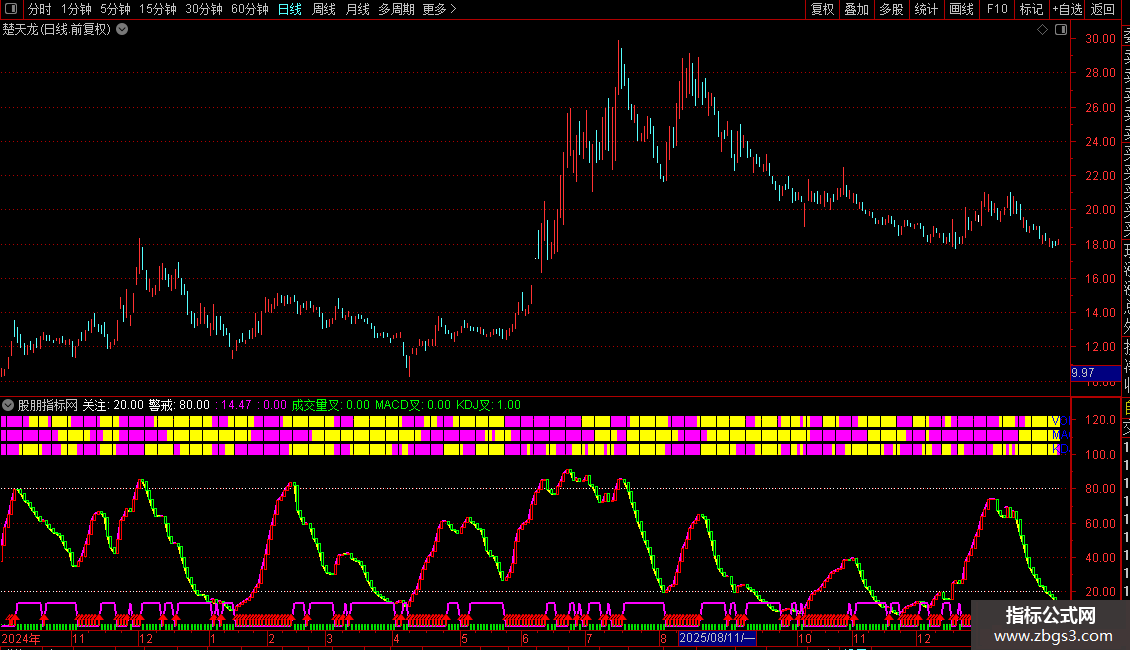 IF(波段>=REF(波段,1),0,13),COLORFF00FF,LINETHICK2;