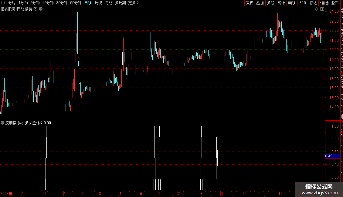 多头金梯X:REF(VAR0< VAR10 AND VAR0>OPEN,1) AND VAR0>VAR11 AND EVERY(VAR22,3) AND VAR0>OPEN AND VAR5;