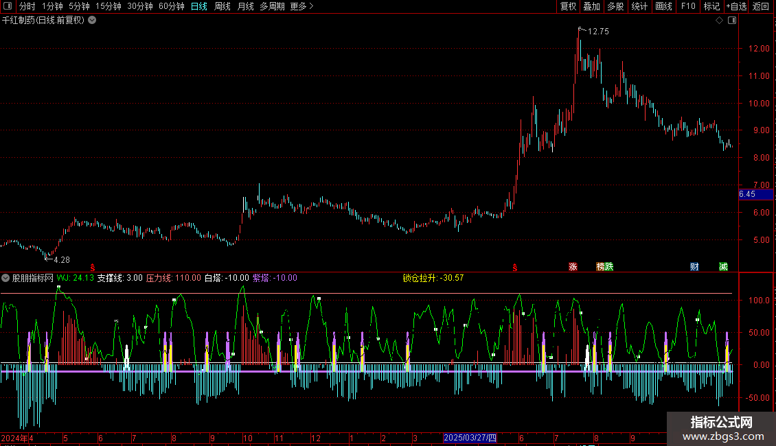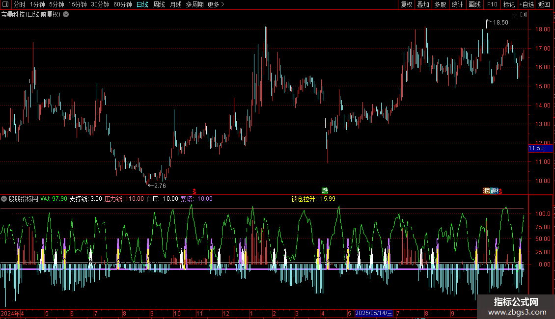 紫塔:IF(CROSS(J,1),50,-10),COLORFF6EC7,LINETHICK3;