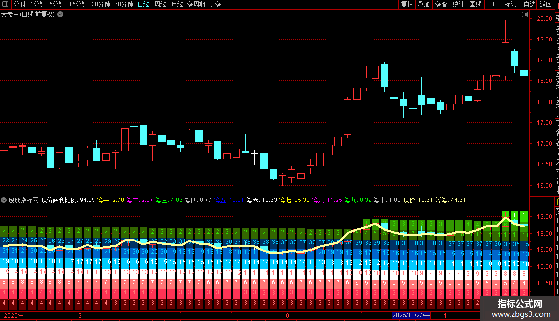 设计逻辑:基于成本重心迁移理论,当某一层级的获利盘比例变化超过百分之一时,判定为资金突破该成本区间,可能酝酿趋势性行情。
