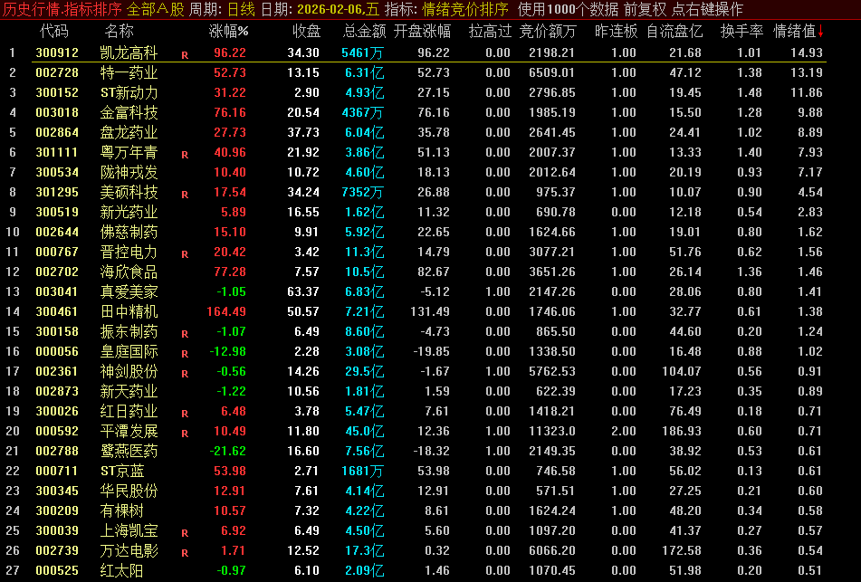 • 时间窗口:每日9:25集合竞价结束后,刷新排序界面。
