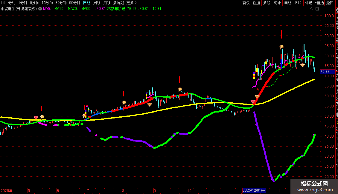 分道关注:IF(ZBGS350>=ZBGS358 AND 牛熊分道<=ZBGS358 AND ZBGS358<=REF(ZBGS358,1),ZBGS358,DRAWNULL),COLORMAGENTA,LINETHICK6;