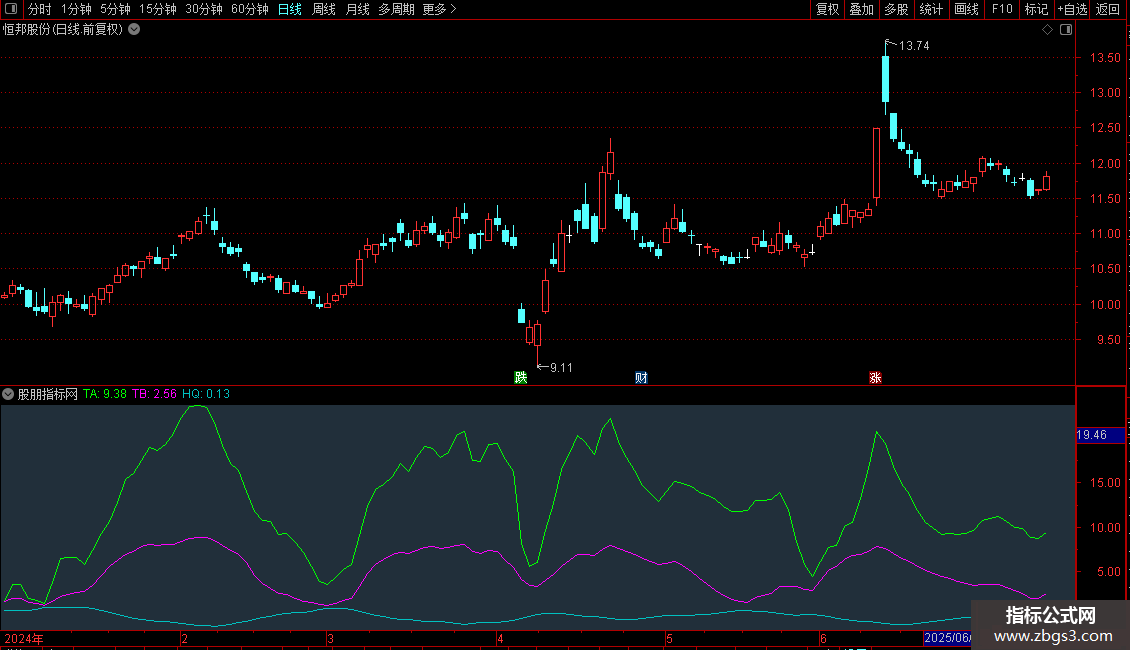 输出 TB:(3*Q3-2*Q4)/10,画洋红色