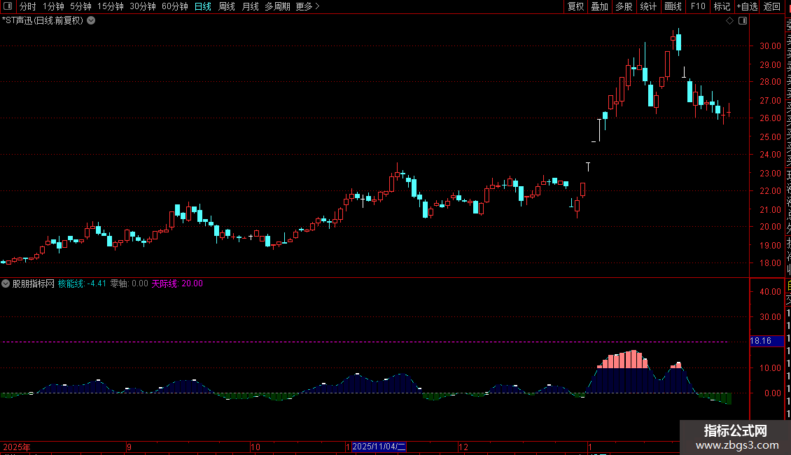 STICKLINE(核能线>0,0,核能线,3,0),COLOR330000;