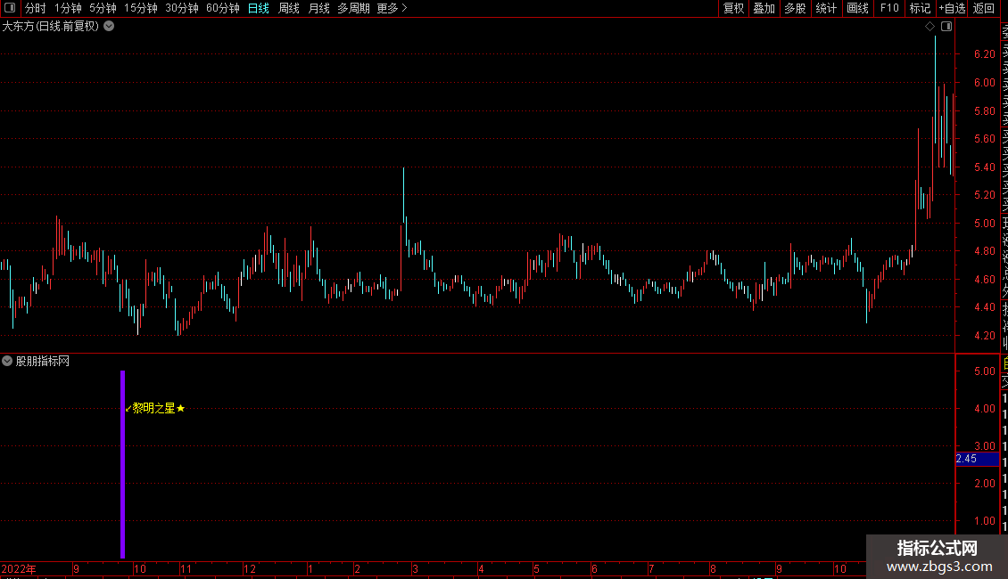 - 📈 副图应用:当出现粉色柱状线及“↙黎明之星★”文字提示时,密切关注