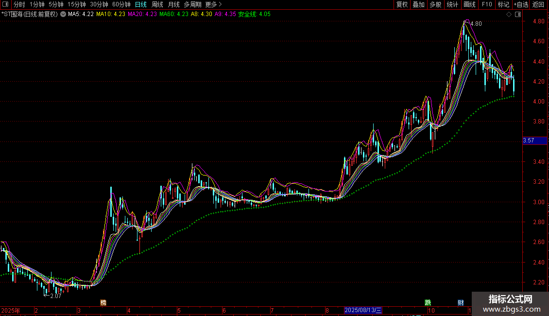 安全线: EMA(CLOSE,55), CIRCLEDOT;