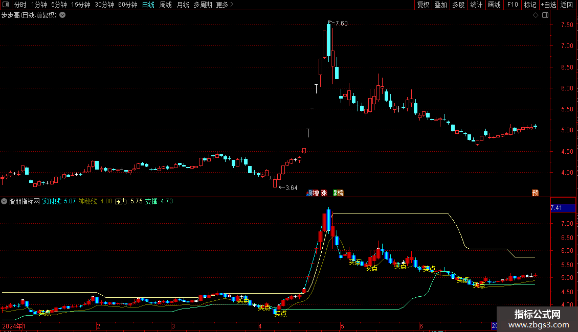 牛熊线:=EMA(COST(27),120),DOTLINE;
