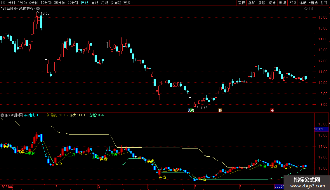 买:=IF(CROSS(M18,M2),5,0* 10000),COLORFF00FF,LINETHICK2;