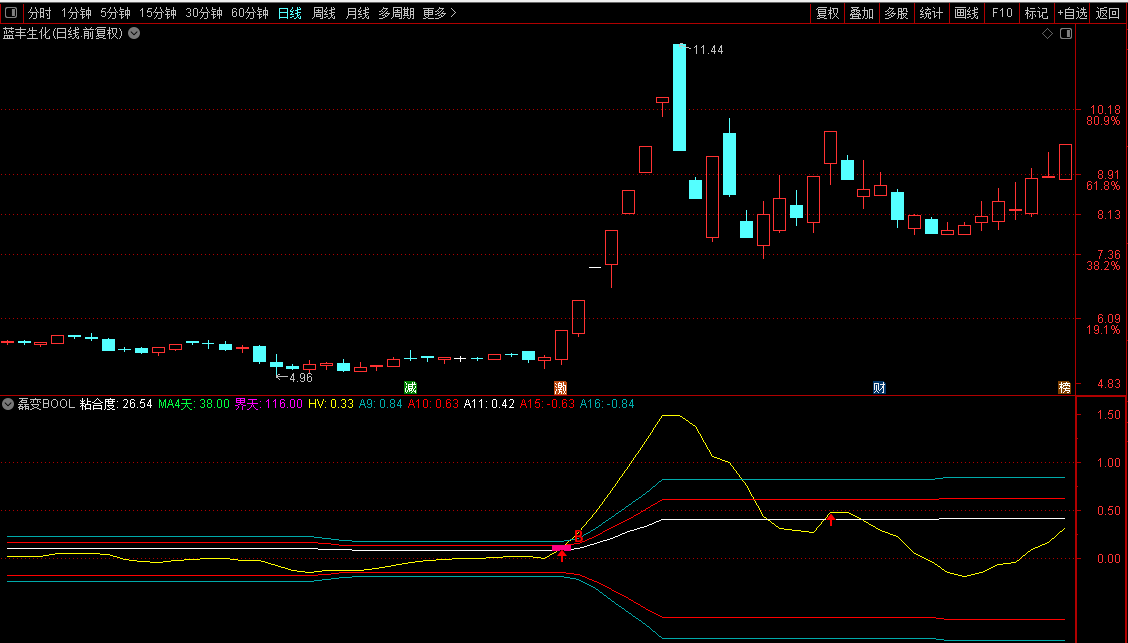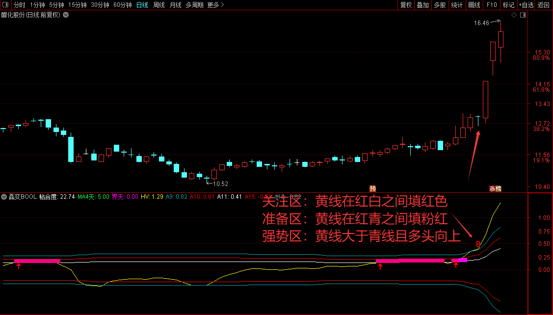 强势区:黄线大于青线且多头向上。
