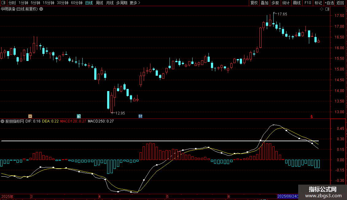 MACD250:REF(MACD/2,BARSLAST(MACD=HHV(MACD,250))),COLORWHITE,LINETHICK2;