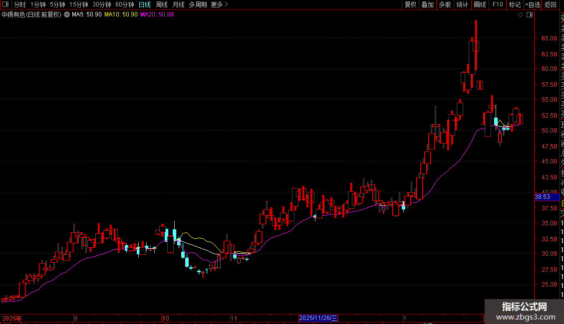 2、压(黄色线):高位压力连线,始终位于白色线上方。