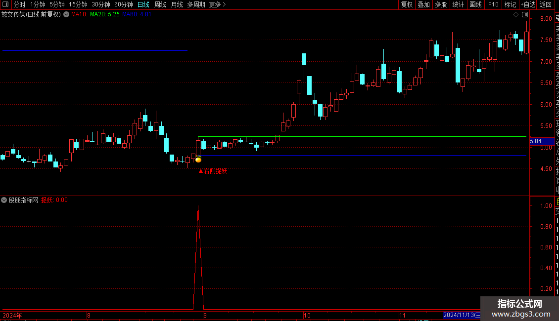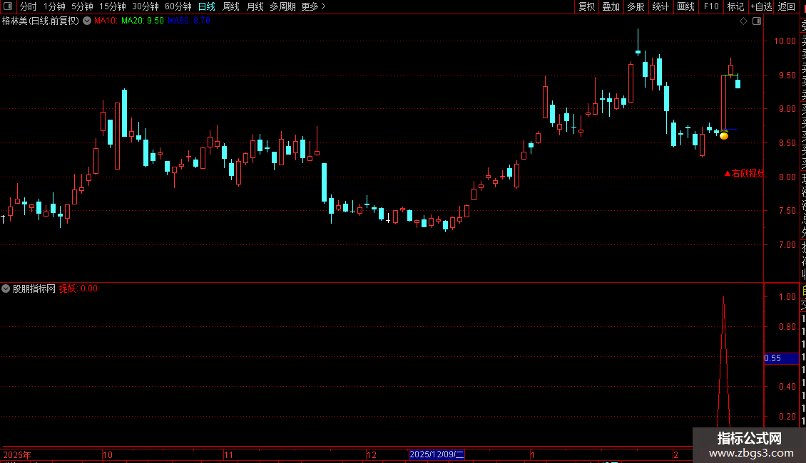 DRAWTEXT(ZBGS7,LOW-0.075*LOW,'▲右侧捉妖'),COLORRED;