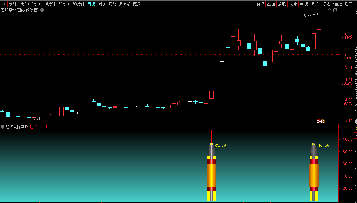 起飞信号:当出现“起飞”信号时,说明个股进入突破行情,是买入的好时机。结合分时走势,跟随大资金的节奏,迅速布局。