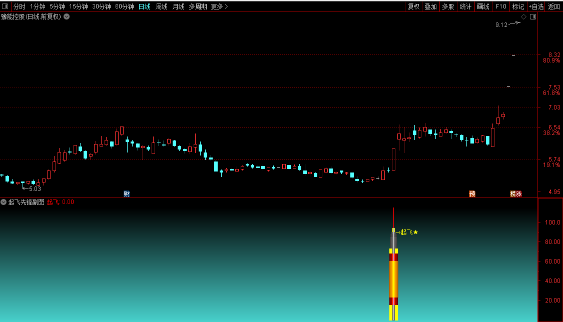 直观信号展示: 当出现大行情时,分时图上将显示“起飞”字样,一目了然地看到买入机会。