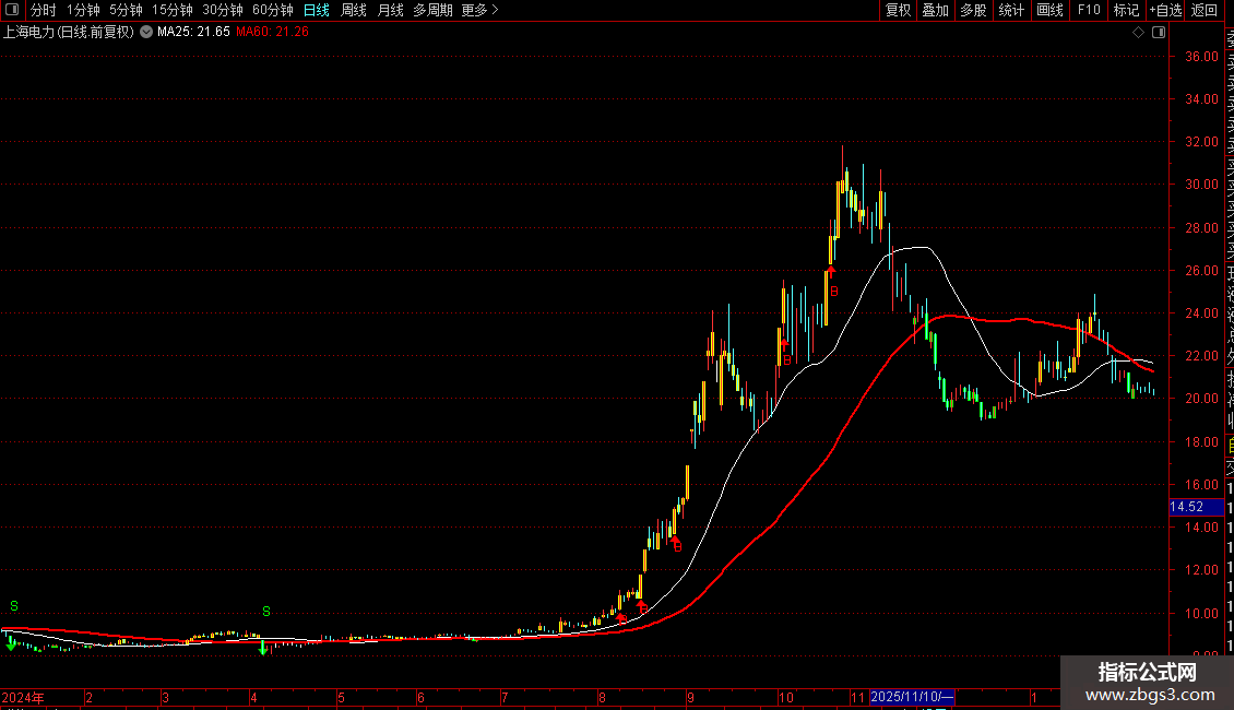 25日均线:被视为中期趋势的“生命线”,是股票趋势判断常用的核心均线指标。股价在其上运行,代表趋势健康,也是股票主图量化分析中重要的趋势参考依据。