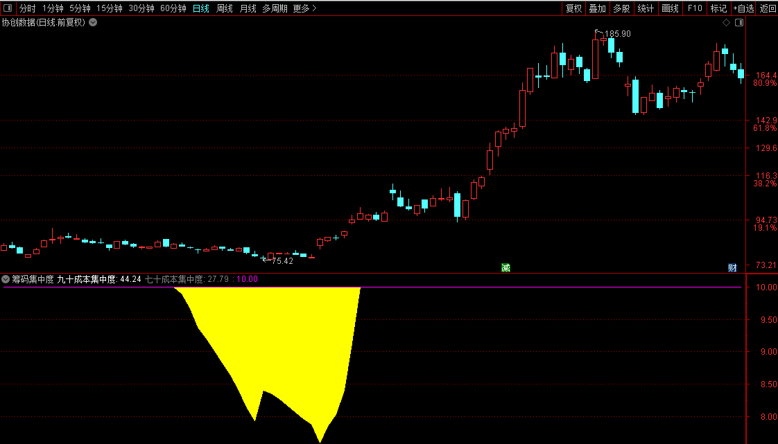 经过反复洗盘,市场上的浮动筹码已经很少,股价波动越来越小,成交量也萎缩到极致。这表明大部分投资者已经被洗出局了,留下的多是主力的坚定持仓。此时70%筹码集中度和90%筹码集中度指标会显示高度集中信号。