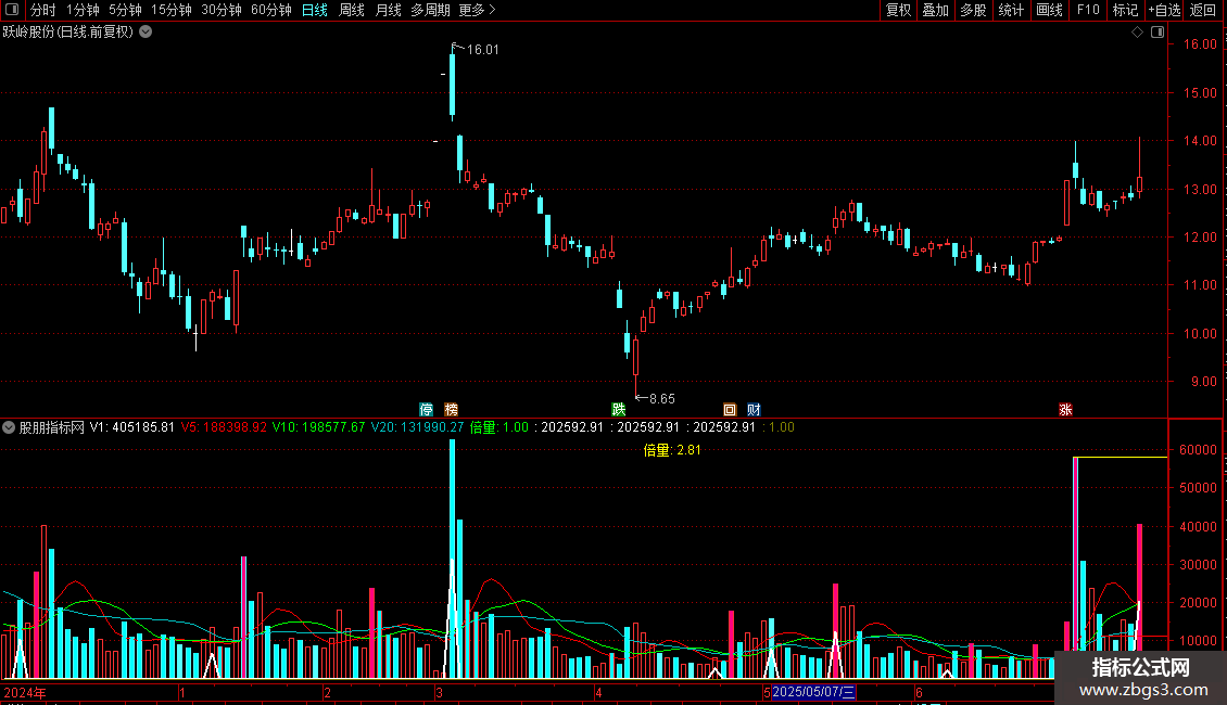 主图成交量柱以`V1`(实际成交量)绘制。