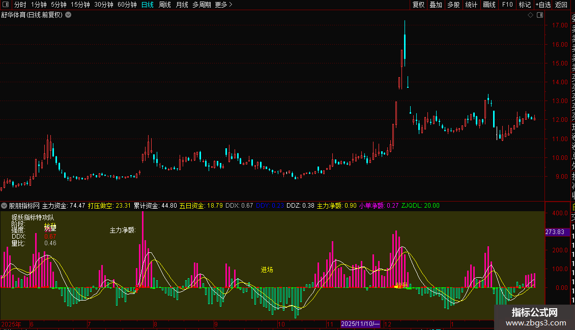 3. 辅助参考:关注主力净额(黄色数值)、量比、ZJQDL强度值,拉升阶段需主力净额为正且量能水平>1.2,出货阶段净额为负且放量下跌时需立即避险。