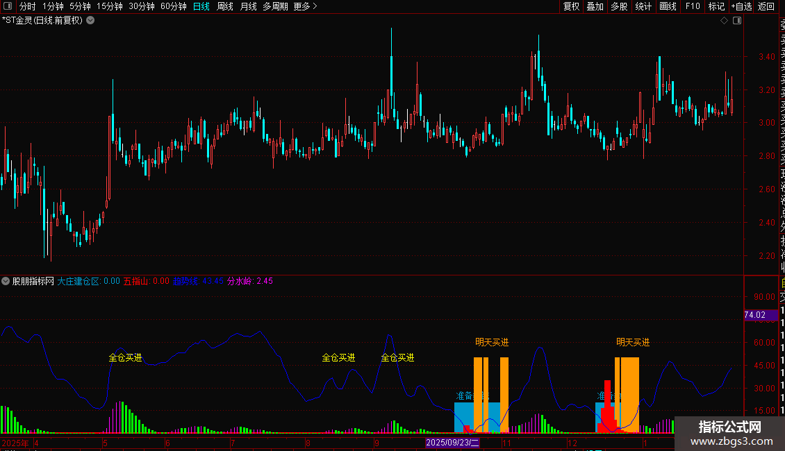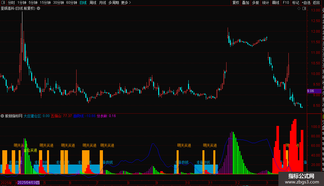 “五指山”的红柱与“大庄建仓区”结合,用于观察底部主力活动迹象。