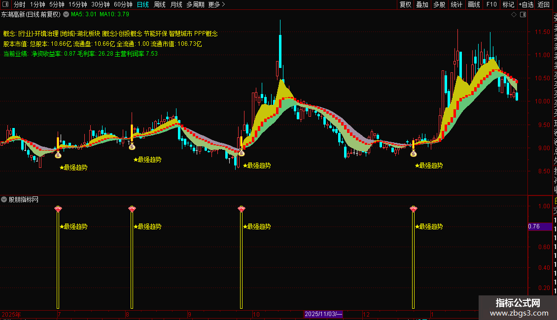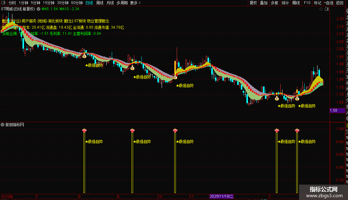 指标是综合看盘工具,主要功能是在图表上显示股票的基本面信息和技术面趋势。