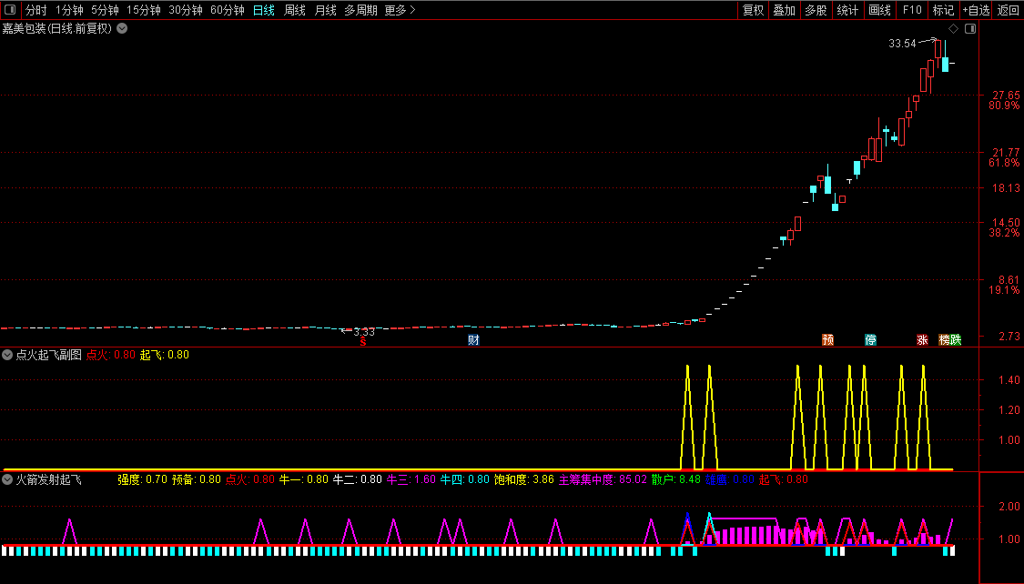 操作策略:当出现"点火"或"起飞"信号时,说明主力发力且涨停概率高,可果断跟进;"预备"信号出现时提前关注;配合成交量放大和筹码集中确认,持股待涨;信号消失或趋势转弱时及时止盈。