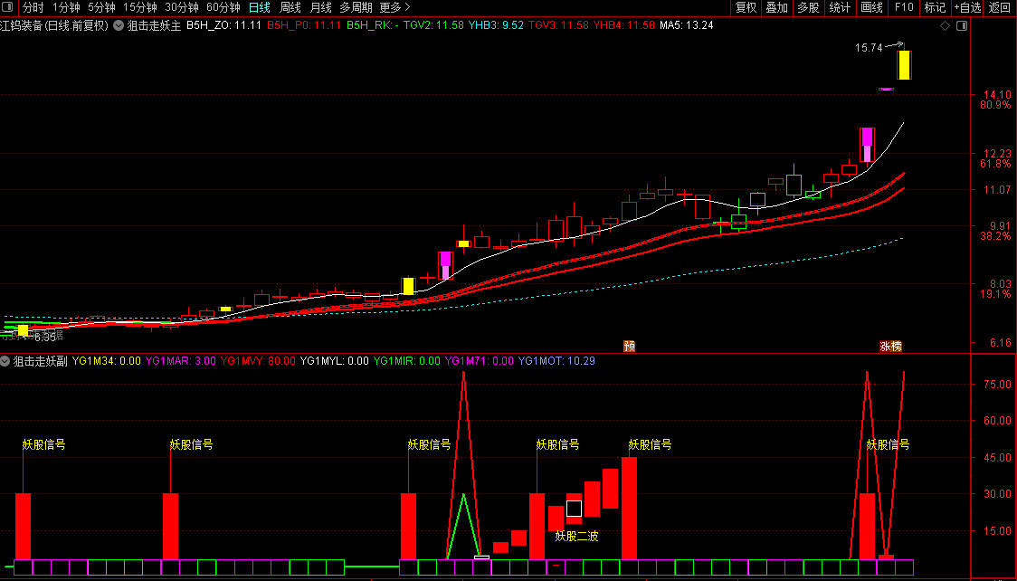 该工具组合通过“看趋势(主图)+辨妖性(副图)+定标的(选股)”的完整流程,为投资者提供了一套清晰的妖股捕捉策略。