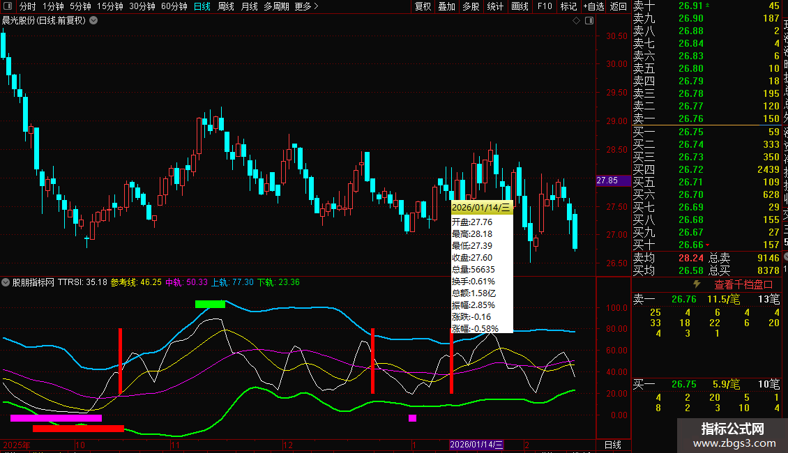 下轨: 中轨- 2*STD(TTRSI,26),LINETHICK2,COLOR00FF00;